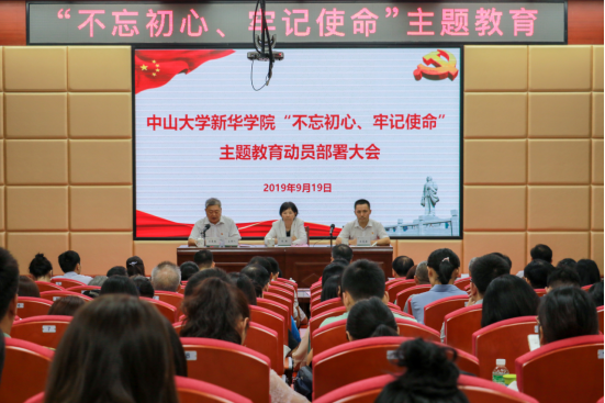 根据中共中央、广东省委和省委教育工委对高校开展“不忘初心、牢记使命”主题教育的工作部署和要求,在省委教育工委主题教育第三巡回指导组(以下简称“指导组”)的指导下,中山大学新华学院(以下简称“我校”)于9月19日上午在广州校区讲学厅召开了“不忘初心、牢记使命”主题教育动员部署大会。