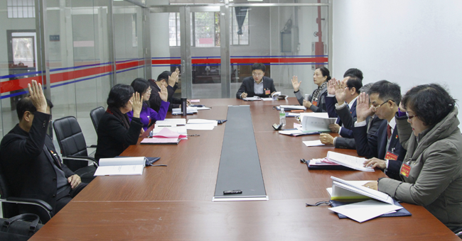 经审议通过,大会执行主席由周云、王庭槐、蓝永金、杨卫华四位同志担任,丁艮平、蔡舒钏两位同志担任副秘书长;大会秘书处下设组织与宣传工作组与秘书组,丁艮平同志担任组织宣传工作组组长,蔡舒钏同志担任秘书组组长;王秀岚、叶启绩等27位同志作为列席人员和来宾;徐文俊同志担任大会总监票人,张华英、林源、周旭毓、殷丹四位同志担任监票人。