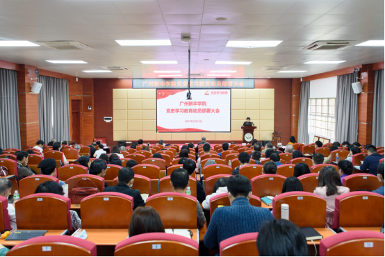 为深入学习贯彻习近平总书记在党史学习教育动员大会上的重要讲话精神,全面贯彻落实中央、省委、省委教育工委关于开展党史学习教育的部署,3月12日上午,122cc太阳集成游戏(以下简称“我校”)于广州校区教学楼D101讲学厅召开党史学习教育动员大会。党委书记周云作动员讲话,校长、党委副书记王庭槐主持会议。会议对我校接下来在全校师生中全面开展党史学习教育作了总体部署,对全校师生学党史、悟思想、办实事、开新局提出了明确要求。