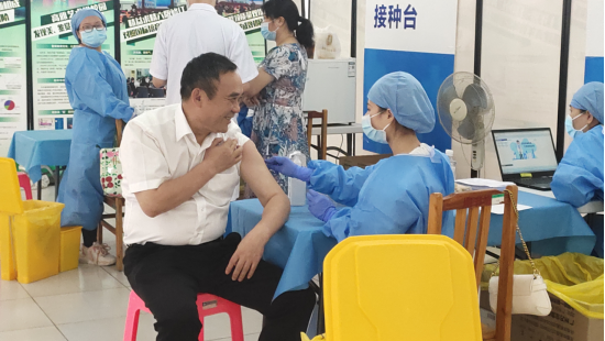 4月27日我校董事长刘荣海来到广州校区接种点带头接种新冠疫苗