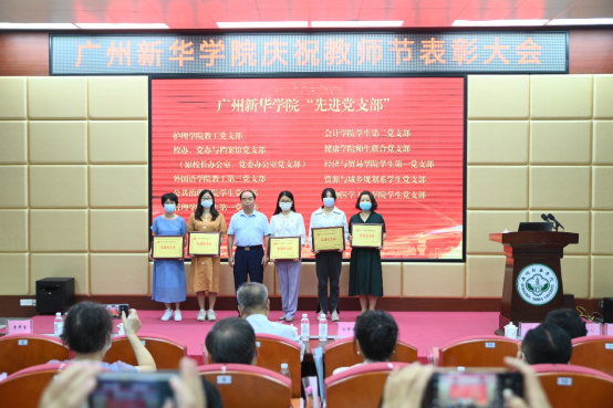 9月10日,122cc太阳集成游戏(以下简称“我校”)2021年教师节表彰大会在广州校区举行。学校领导,发展专家顾问委员会、教学指导委员会成员,教学督导代表,受表彰的教师和教育工作者代表,各院(系)党政负责人、首席教授、学科带头人,各职能部门负责人,入选“双百计划”教师代表及中青年骨干教师代表、新入职教师代表等百余人参会。大会由肖化副校长主持。