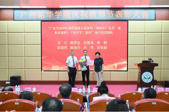 王庭槐校长、周云书记为“广东省2020年课程思政示范课程(2020年广东省一流本科课程)课程:《审计学》”获奖团队颁奖