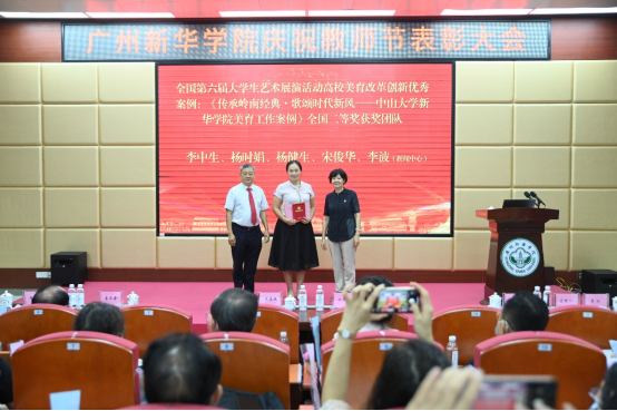 王庭槐校长、周云书记为全国第六届大学生艺术展演活动高校美育改革创新优秀案例二等奖团队教师代表颁奖