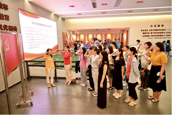 我院教师党员代表在参观纪念馆之前,首先重温入党誓词,通过重温入党誓词,让教师党员回头看看自己入党走过的“路” 和立下的誓言,同时也激励广大党员教师带头努力工作、无私奉献、锐意进取、奋斗终身。