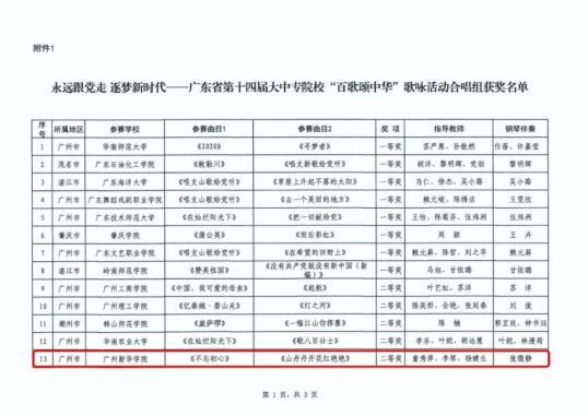 ——广东省第十四届大中专院校“百歌颂中华”歌咏活动一、二等奖