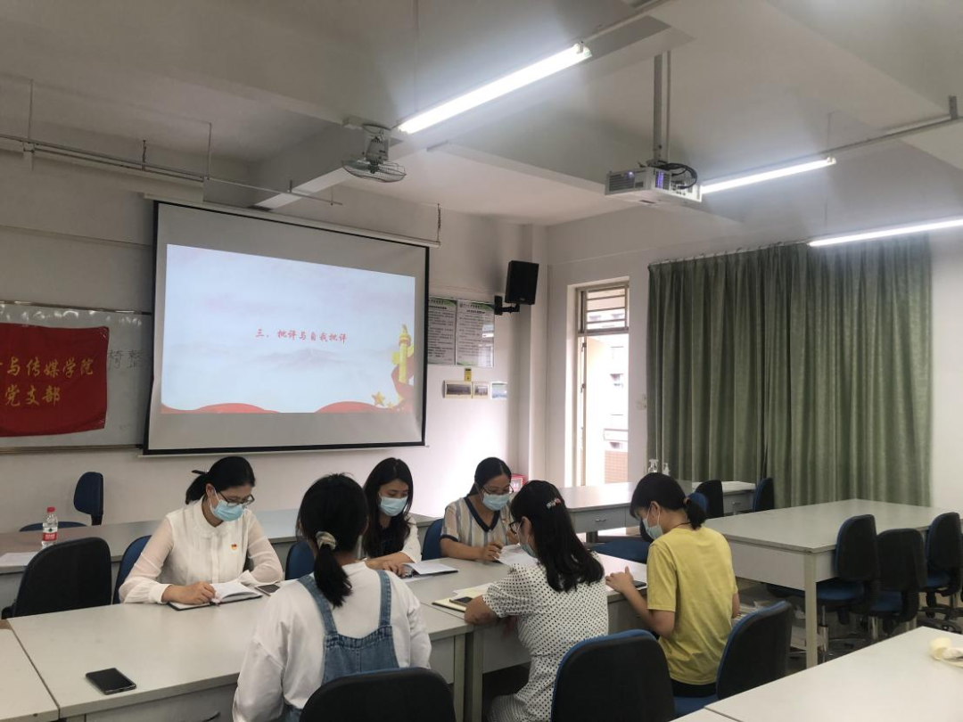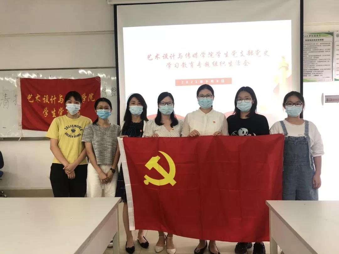 艺术设计与传媒学院学生党支部2021年9月8日在格物楼1b403顺利召开党史学习教育专题组织生活会。参会人员有学生党支部书记陈捷云、副书记潘欣、2019级辅导员黄建清、2020级辅导员杜艳欣以及艺术设计与传媒学院全体预备党员。