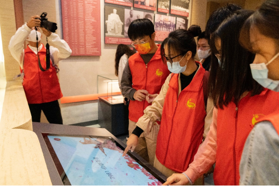 我校马克思学院老师张彦参观展馆后表示:党史融入思政课,不仅需要课堂的理论讲授和思想启迪,实践教学也是不可或缺的重要向度。从通俗意义上讲,实践向度的融入就是“走出去”,比如充分利用地方党史资源,走进红色场馆,参观红色遗址,观摩数字展馆,或者走访革命亲历者。与课堂讲授相比,实践教学是一种沉浸式、体验式教学,能充分激发信仰、浸润情感、获得启发并汲取力量。广东在中国近现代史上具有举足轻重的地位,许多重大历史事件的发生地就在广东,众多重要历史人物就是广东人。党史融入思政课在广东具有得天独厚的资源优势,实践向度的融入能够让党史教育自然而然、浑然天成。