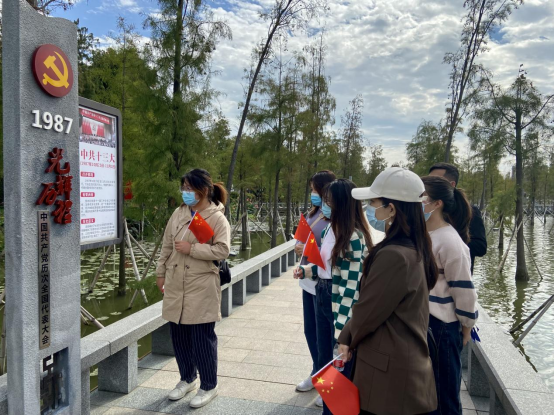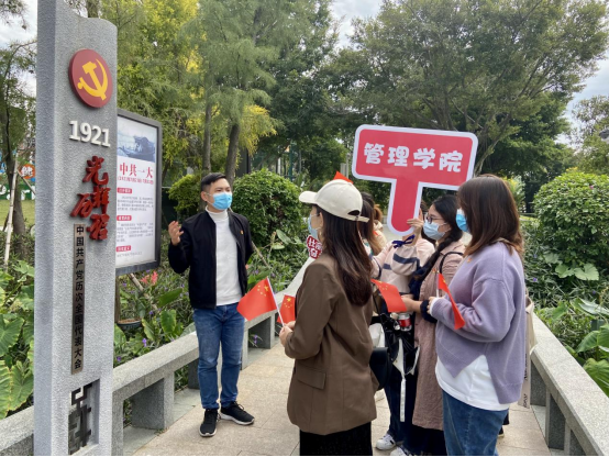 为庆祝中国共产党成立100周年,深化“传承红色基因,赓续红色血脉”党史主题教育,增强党组织的凝聚力、战斗力和创造力,2021年11月12日上午,管理学院教工第二党支部党员代表到东莞华阳湖党建主题公园进行参观学习。本次参观学习旨在让教职工党员们再次接受党性锻炼,进一步发挥管理学院教工第二党支部“一名党员一面旗,一名干部一标杆,一个支部一堡垒”的先锋模范带头作用。