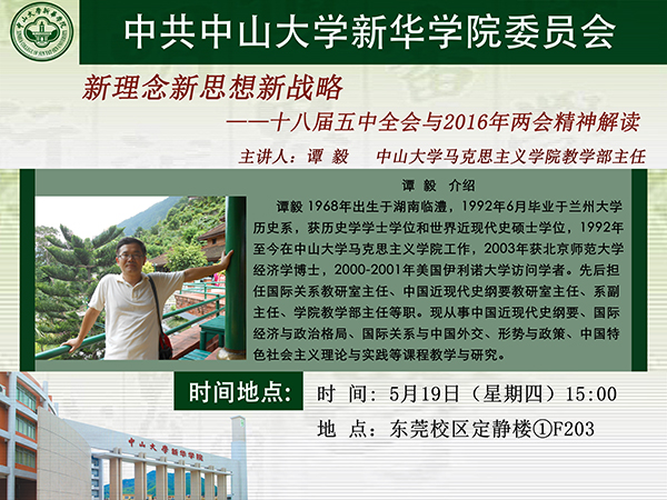 [党建系列讲座]谭毅:新理念新思想新战略——党的十八届五中全会与2016年两会精神解读