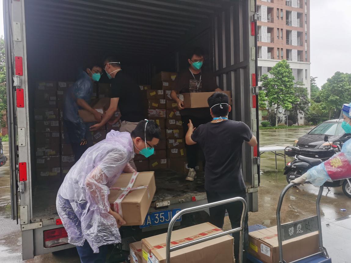 卸货、转运、入库、登记……,工作人员很快形成了一个运输链。